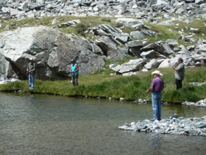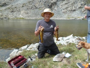 Blanca Peak is listed as a hard trail in the Wells Trail Guide Book, but not for the rigs we are traveling with today! We are here for the sheer beauty of the trail and companionship of new friends. Towering over the Sand Dunes National Park, Blanca Peak provides three “14‘ers” in the same location. So it is sought out by hikers and jeepers alike. The trail immediately begins to climb when you leave the plains and does not stop climbing until you get to Como Lake. Our jeep easily overheats with the constant uphill strain, weak gas, and possibly the high altitude. But we take our time and enjoy the beauty - all the time watching the temp gauge. There are 4 ledges which are named Jaws 1, 2, 3, and Jaws 4. Since our last trip on this trail, we were surprised to see the most dangerous spot Jaws 2, had been widened, so it was not near as spooky as it used to be. At any rate, it gets your attention, because this was the site of a tragic accident that took 2 peoples lives when their jeep went over the edge. When our group gets to Como Lake, the fishermen (and woman) break out the poles and proceed to catch our supper! Coloradans, we find, prefer to use worms on a hook! Now that is old school at its finest. And successful! Traveling further past Como Lake is Blue Lake. More fishing here gives us our limit of rainbow and golden trout so we head back down the mountain.
