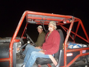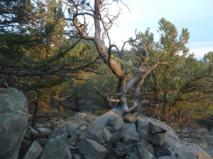 We arrived at the well documented trail head of Chinaman Gulch / Carnage Canyon with plenty of daylight to go on the easier trail of Chinaman Gulch before dinner. Immediately, we are impressed at the change of landscape and we marvel at the beauty of the pines and rugged round rocks. We make it to the overlook just in time to snap our mugs in front of a spectacular sunset. Knowing this trail is a loop, we continue on to finish the loop. We move along, snapping pics, amaze at how each turn in the road is better than the last, watch the last rays of sun light a streak in the canyon, discover the silence of dark fall, start heading further from camp, make definite progress in the wrong direction, make sure we stay in radio contact with each other, get use of head and rock lights, start praying we aren’t lost, feel relief when the trail turns a homeward direction, exhale when the trail comes back on itself at a familiar spot, then laugh at what an adventure we just experienced!!! We figure out my interpretation of the map on the marquee - was not quite accurate. We were never wrong.......we just never knew exactly where we were!!