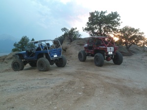 Our church on this Sunday was outside Monte Vista and made of mounds of sandstone. Travis Trail is very similar to Farmington. We had a blast on this thrill a minute run. The trail weaves in and out of the outcroppings, circling back to do numerous obstacles on the same mound. Literally hundreds of climbs, walls, and ledges are found in this area of an abandoned rock quarry. Too many obstacles to name but some famous ones were Kiss My Ass and Brain Dead. FUN, FUN, FUN - and our kind of trails! A quick thunderstorm ended our play, so we loaded the rigs and moved on to Buena Vista.