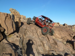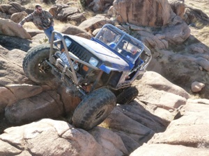 Cyclops Trail was on the early menu this Saturday morning. At the entrance sits the obstacle Crack’d Core and was calling to us.....come to me.....you can do it.......give me a try. So we just had to answer the call and whoa was that a trip! I was first up and yes the sky was extremely blue this morning! Even though our sticky tires are bald as a Marine in boot camp - those things just still hook up and it crawled that sucker! Only thing is, I celebrated too early at the top and got my diff caught up and needed a tug to release me out of its clutches. You would think the wall would be enough challenge, but the exit is no picnic whatsoever. It drops off quickly into a deep hole that smashes your front end into the ground. Once out of that, you straddle a couple of fins that could not be any further apart. Everyone who tried it made it , so today was starting on a great note! After the first leg of Cyclops Trail we split the group on Skinny Minny 1 and Ripper’s Run. We had never done Ripper and it is a good one! After a lunch back at camp, Train Wreck Trail was next. Have you ever done Train Wreck? Ya, you bet it is a good one. Those downhill spots are pretty drastic! And certainly live up to the wreck part of its name! We thought we would do Hannibal next but traffic was on it, so we went up Devil’s Draw to Cwazy Wabbit. Yes, it is my trail and yes it is pretty wicked. Short and sweet - just like me. Next - King of the Hill Trail was busy, so we went around to the King of the Hill Wall. Maverick, Fred, and Gary get caught in the net with Dolphin, right next door. Can you say pucker? An off camber turn on the wall makes this one challenging and the top ledge pushes you to the cliff side where the real estate runs out quick!