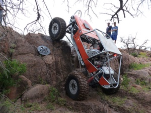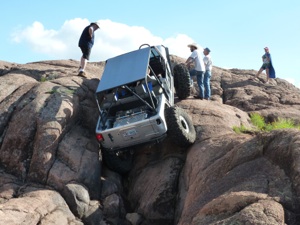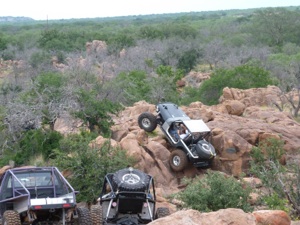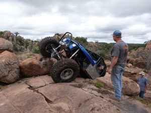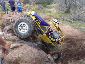 We arrived at K2 mid afternoon, still overcast, but with no rain falling. The sandy soil and granite rock is more forgiving in wet weather than limestone and mud, so the easy trails were pretty much the same. The large obstacles were a different story. With no way to avoid the puddle of mud at every obstacle entrance, it was a challenge just getting the tires up. With determination (and a lot of extra time) our favorite trails and obstacles were run (I opted to watch most of the time since I was struggling like a floundered fish).
